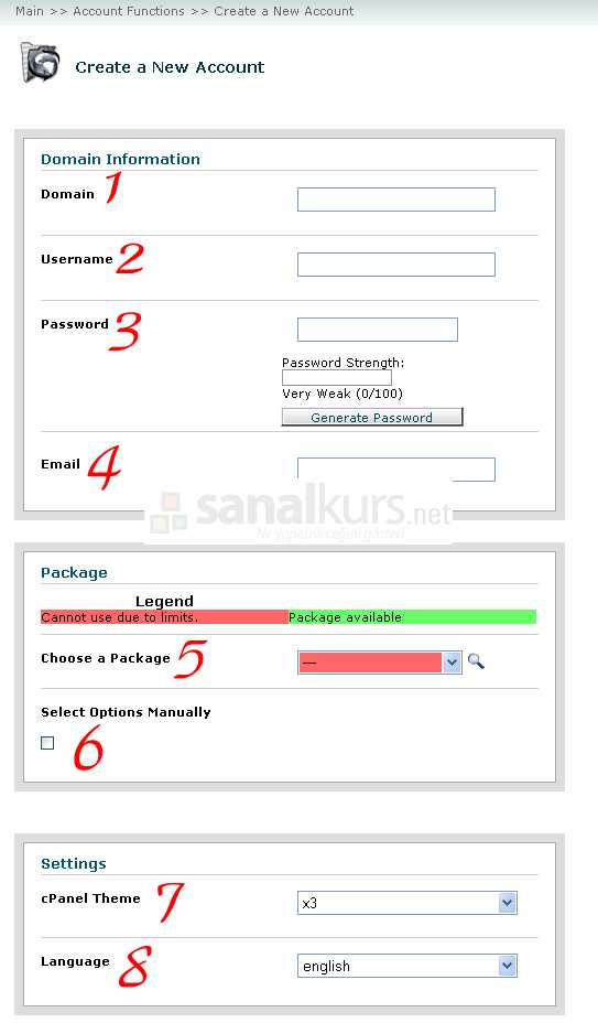 5 choose a Package : Daha önce oluşturulmuş veya sizin oluşturduğunuz hazır paketleri buradan seçebilirsiniz.Açacağınız hesabın özellikleri seçtiğiniz paketteki değerleri alacaktır.