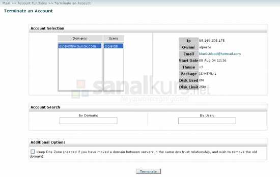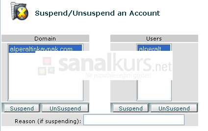 - Suspend/Unsuspend an Account ( Suspend at/kaldır )